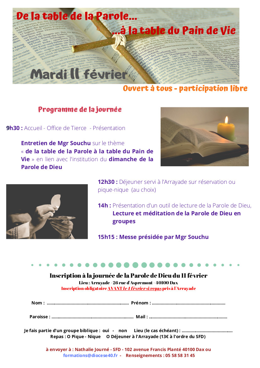 Table de la parole à table du pain de Vie inscription 27 janvier 2020 827 × 1169 Table de la parole à table du pain de Vie inscription Temps estimé pour la lecture de cet article : 0 min